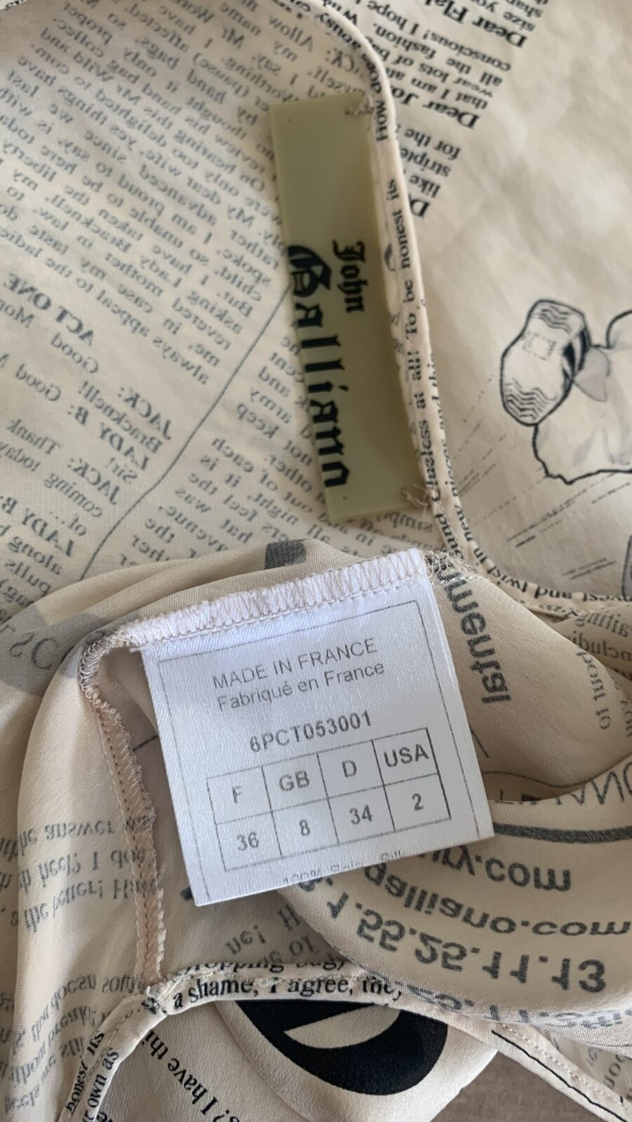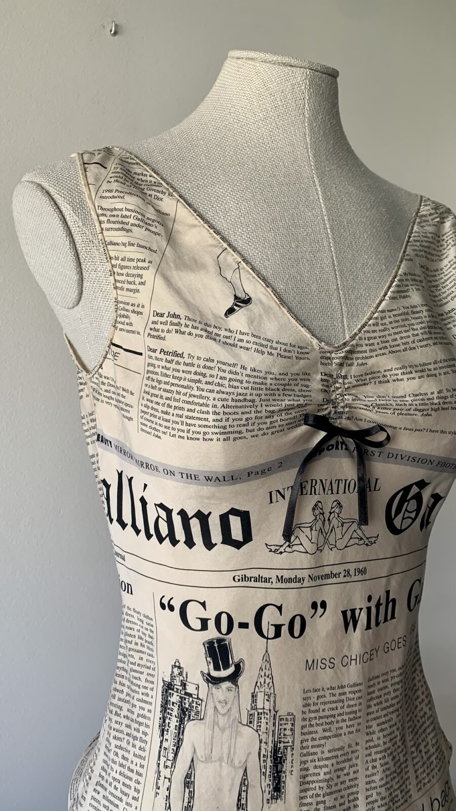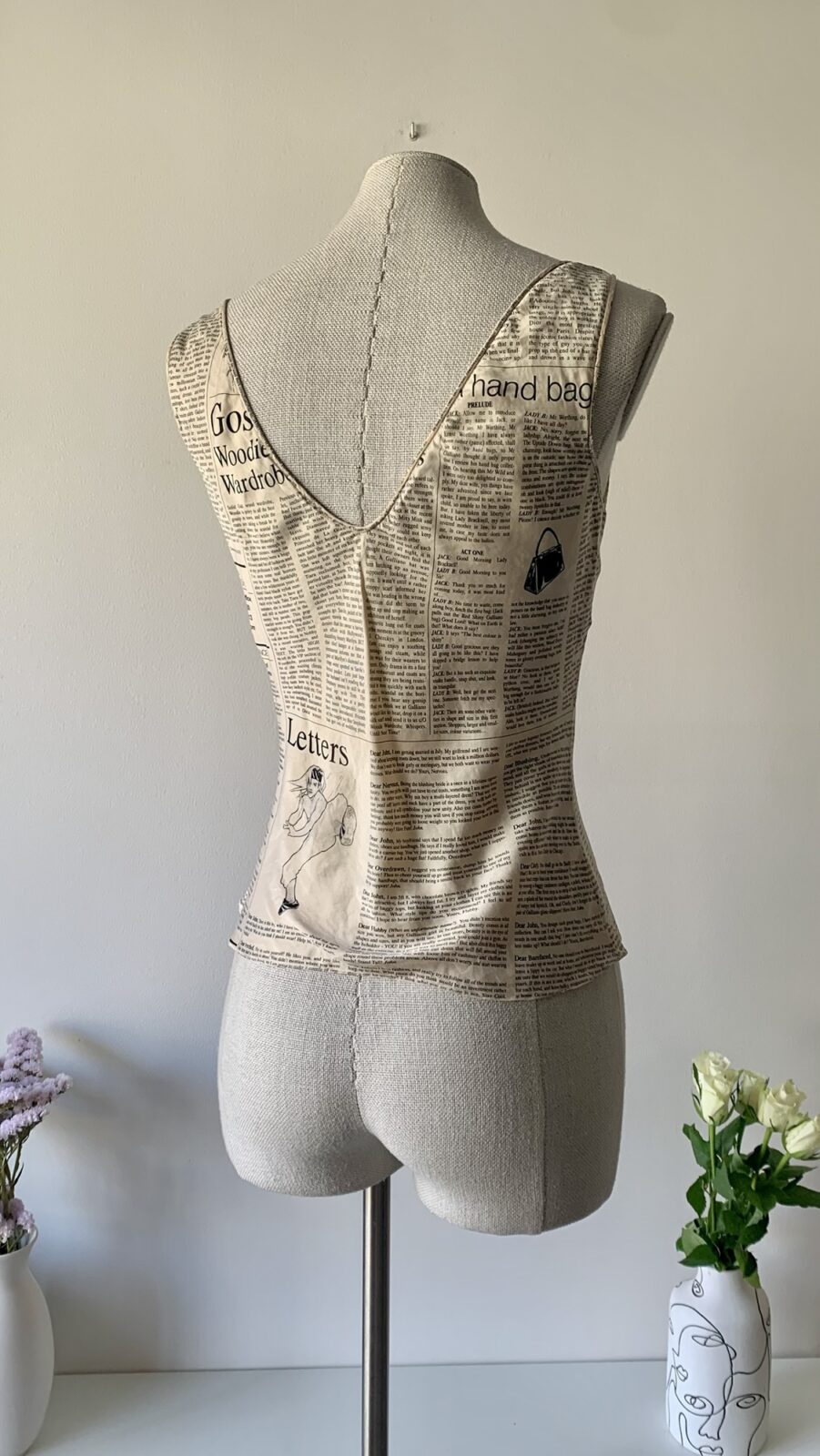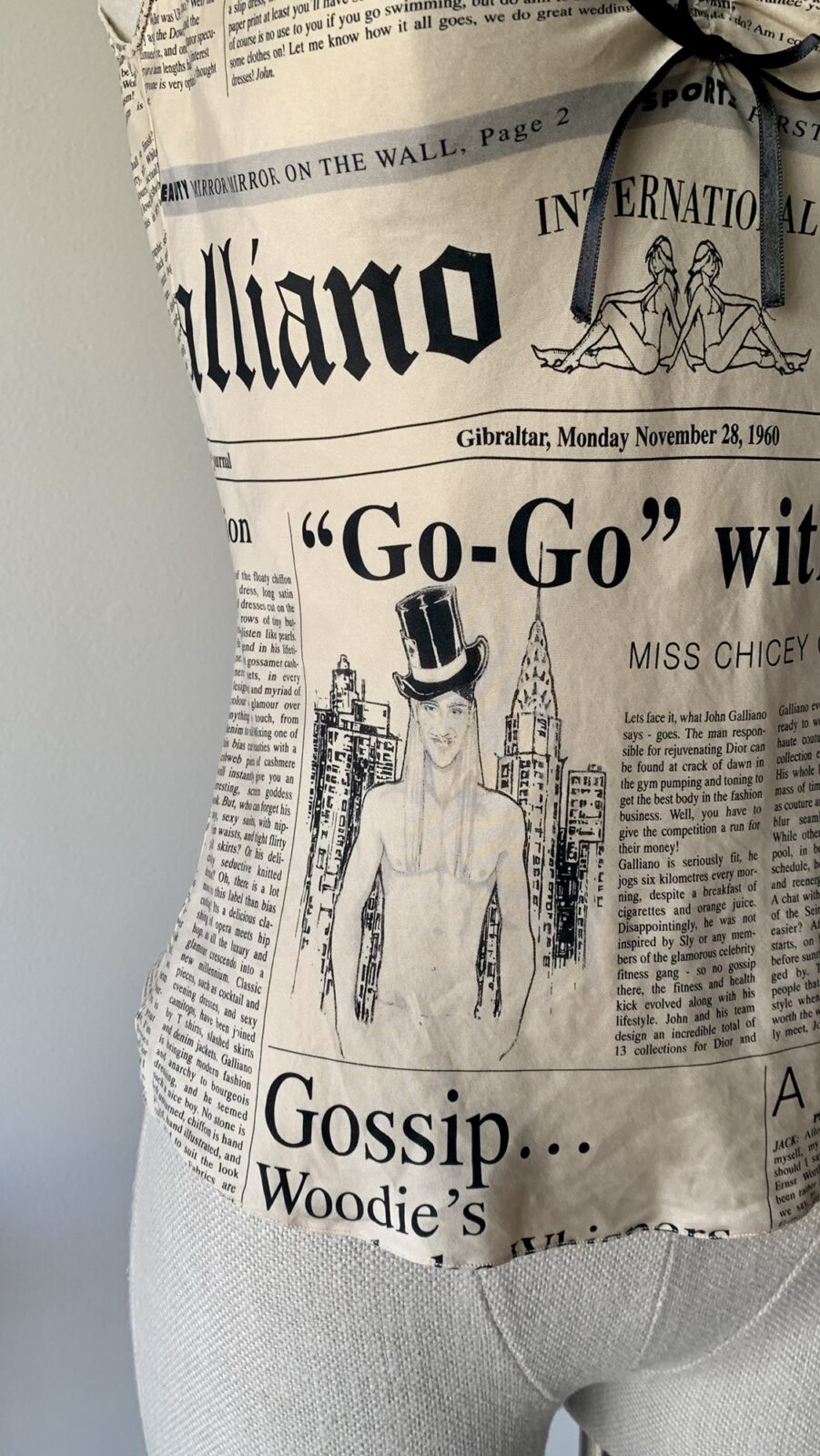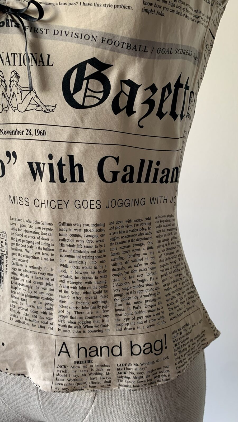 TopsJohn Galliano top with the very well-know newspaper print from the Spring Summer 2006 collection. One of the most recognisable Galliano prints, produced both during his time at Dior, but also for his own maison.