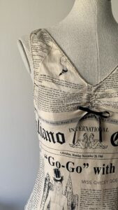 Details : This piece features a soft V neckline, the gazette print, and a mini black bow.