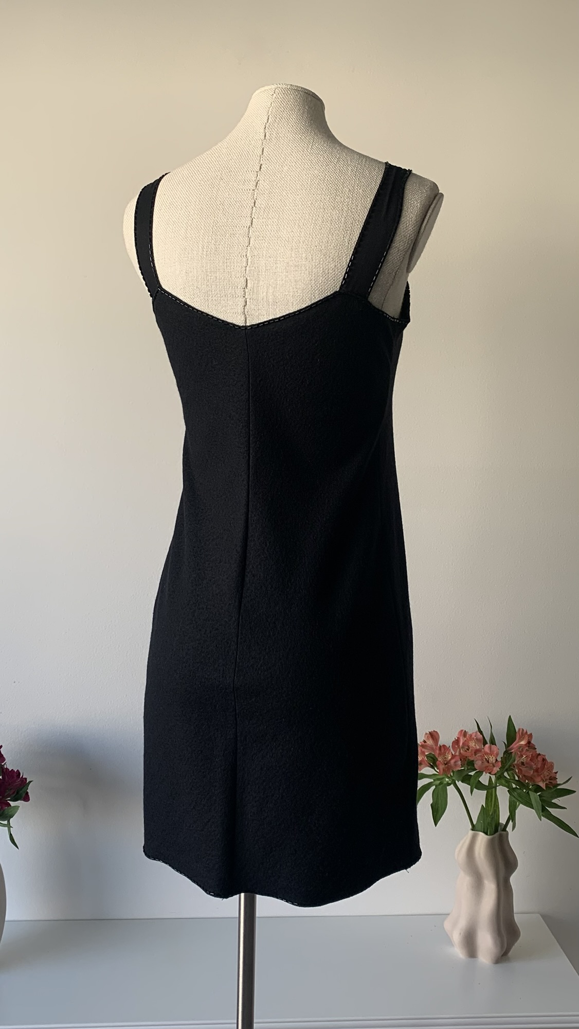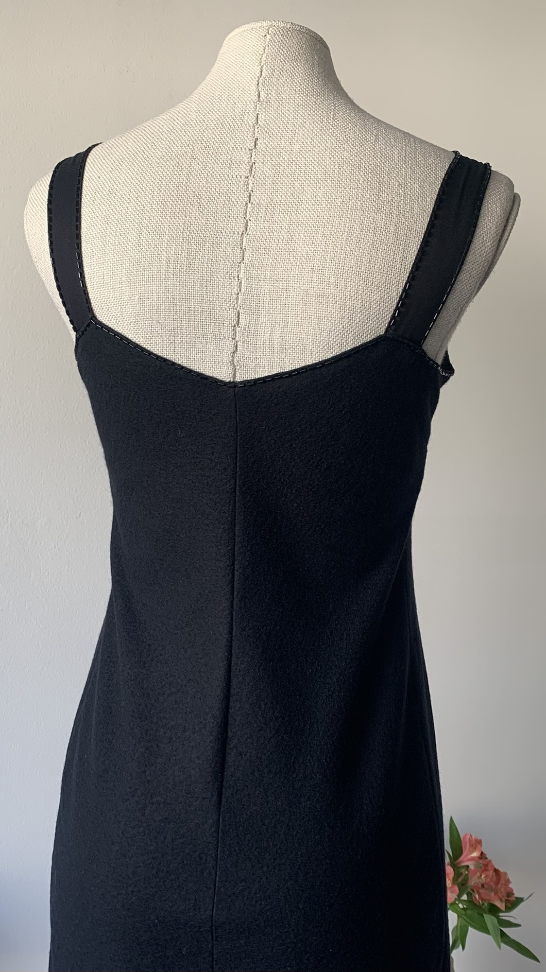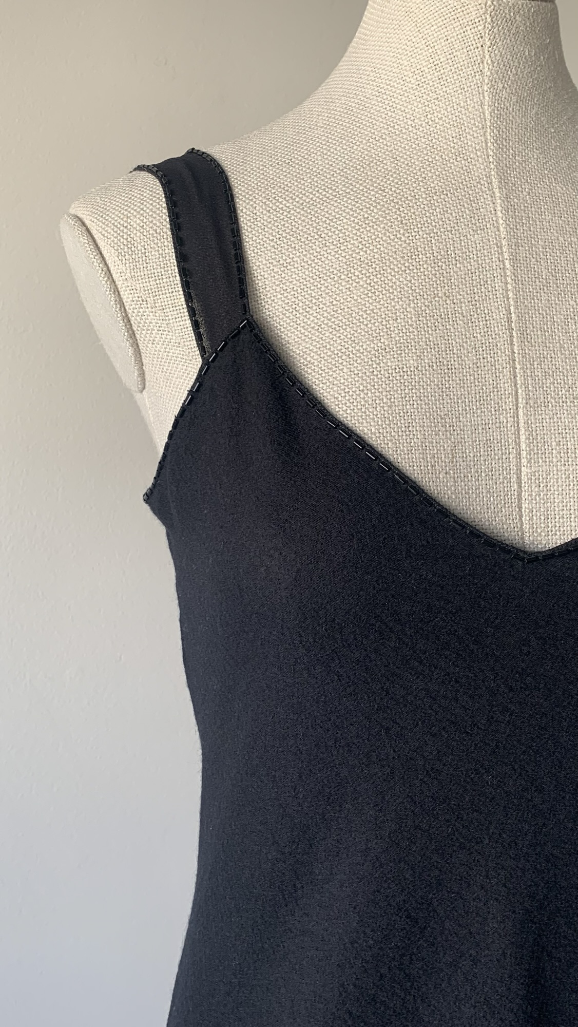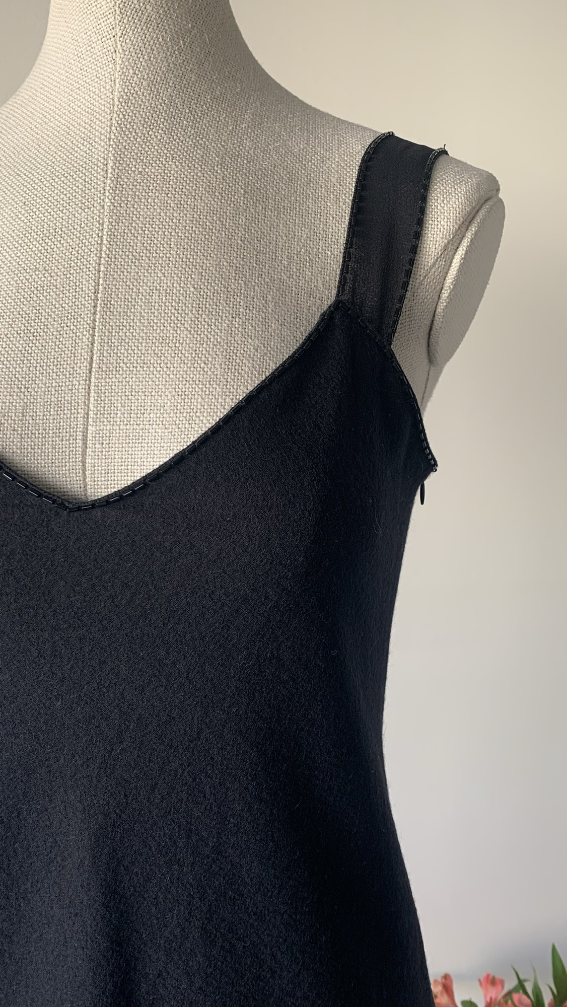 Prada beaded wool black minidress with beading details from the Fall Winter 1997 collection. As seen on the runway (wool and silk versions).