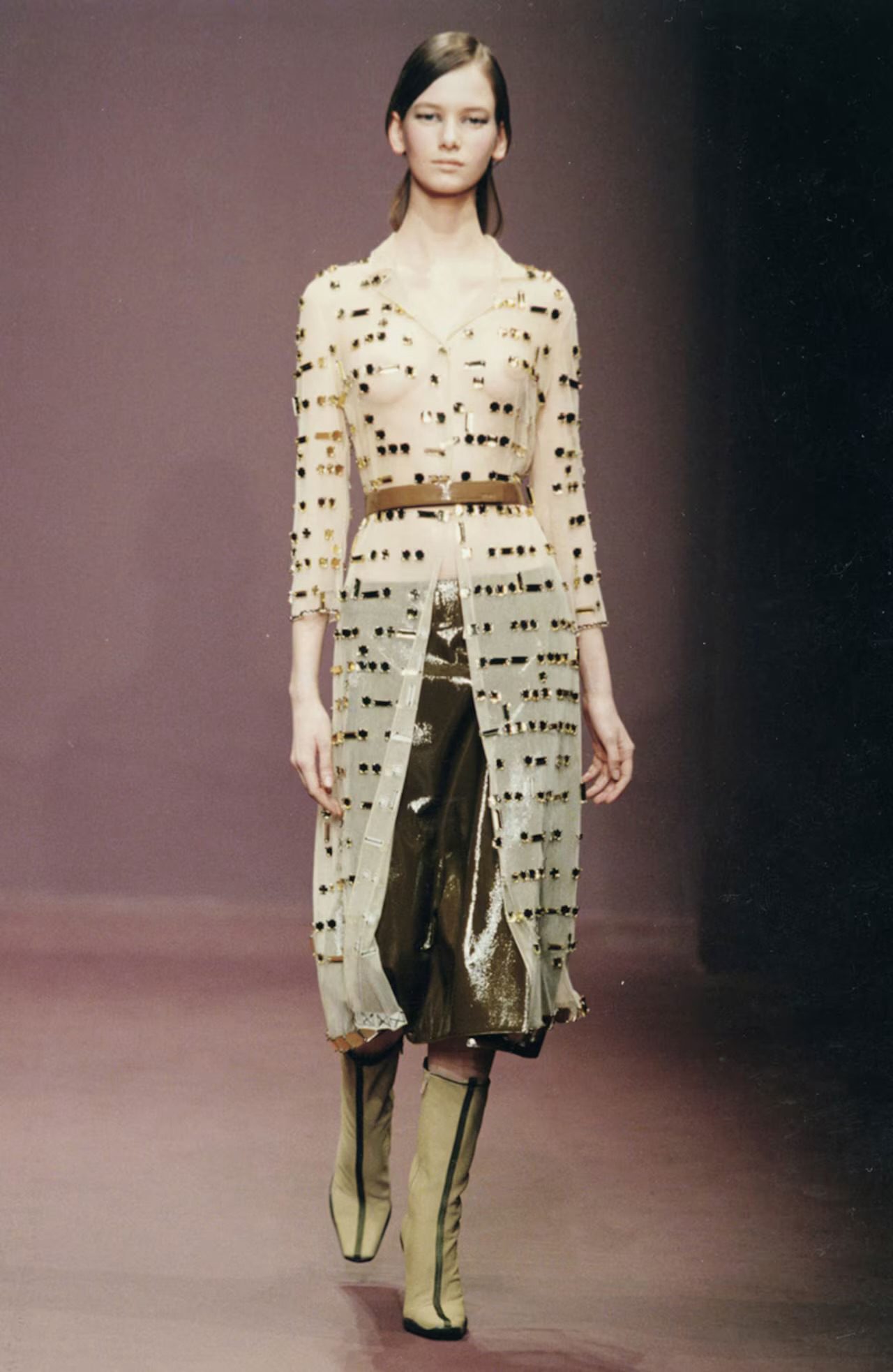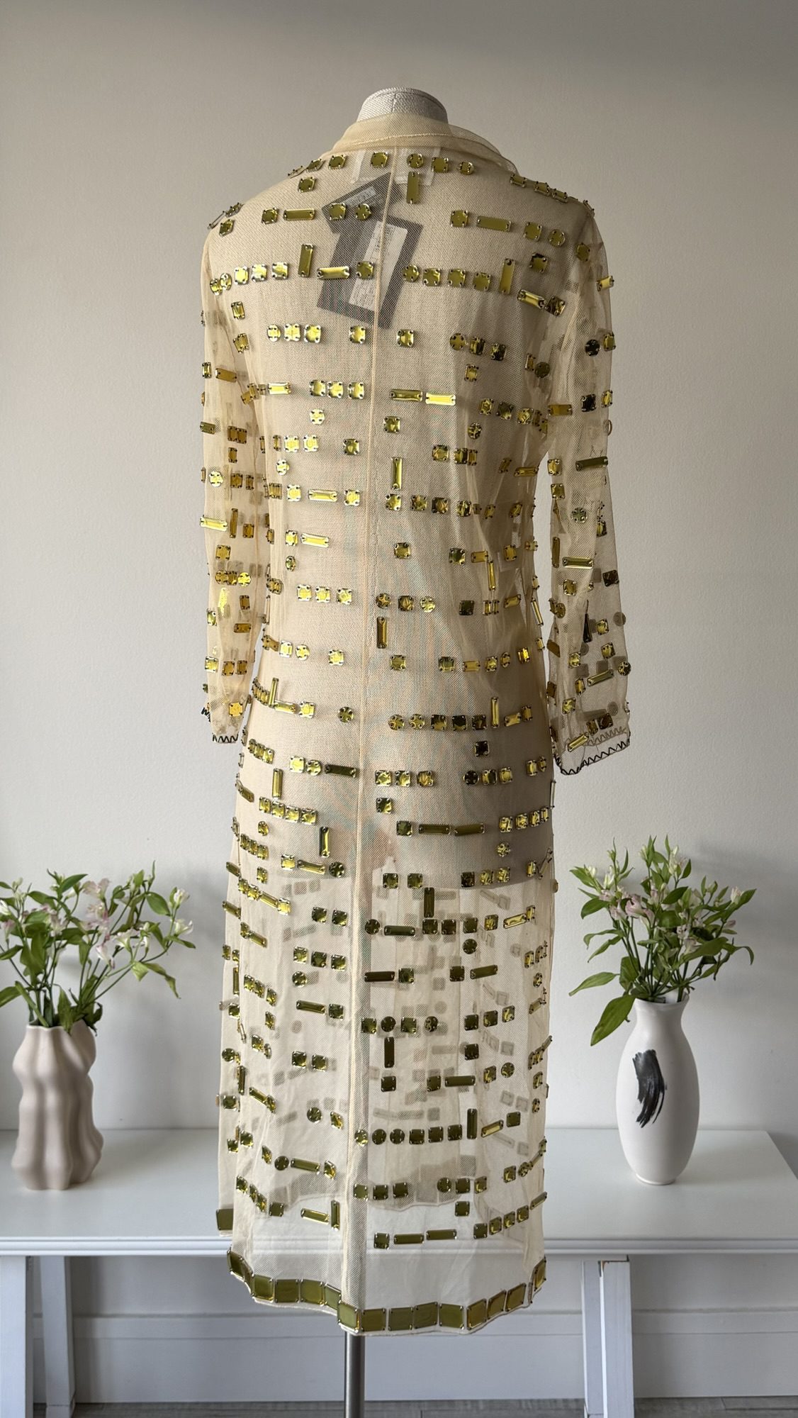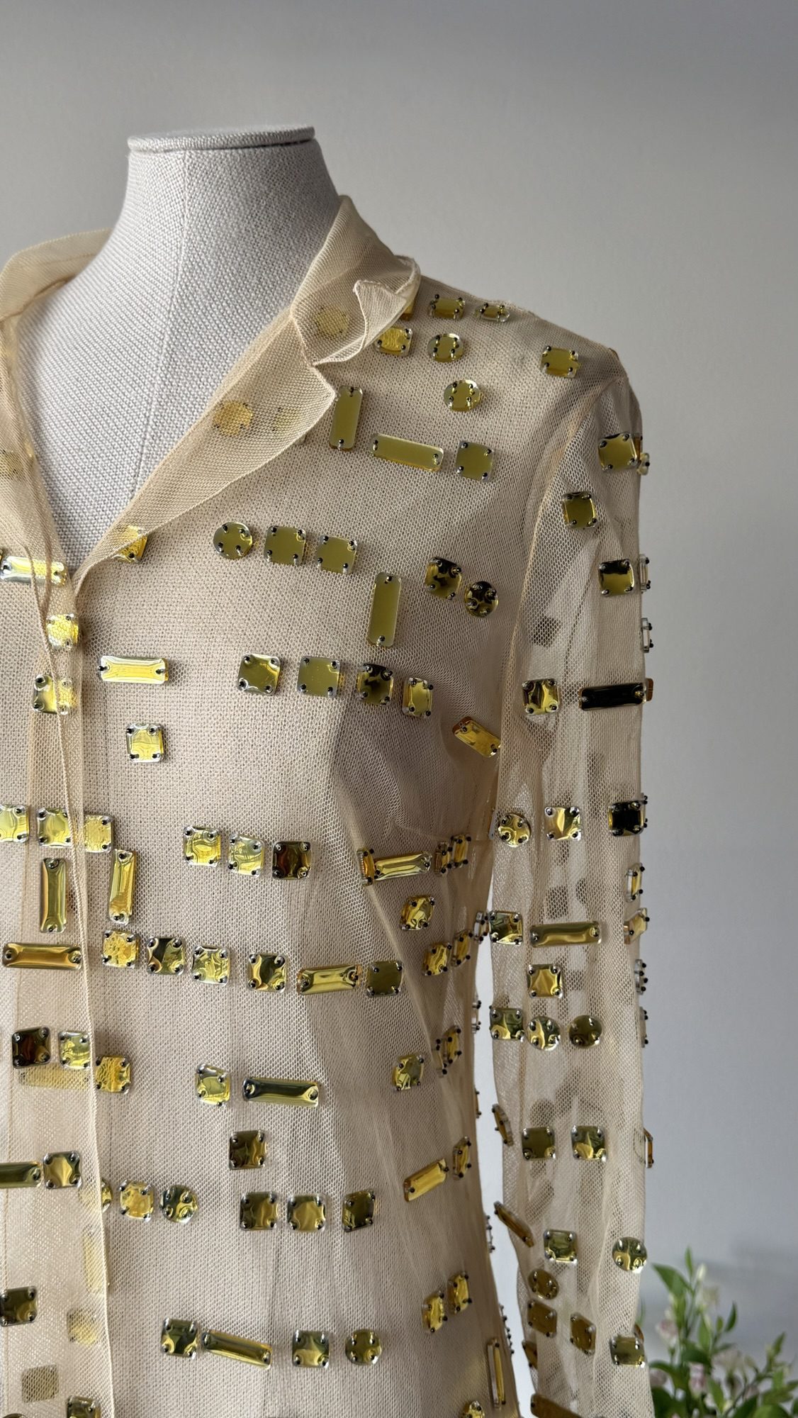 Prada FW 1999 golden crystal tulle coat