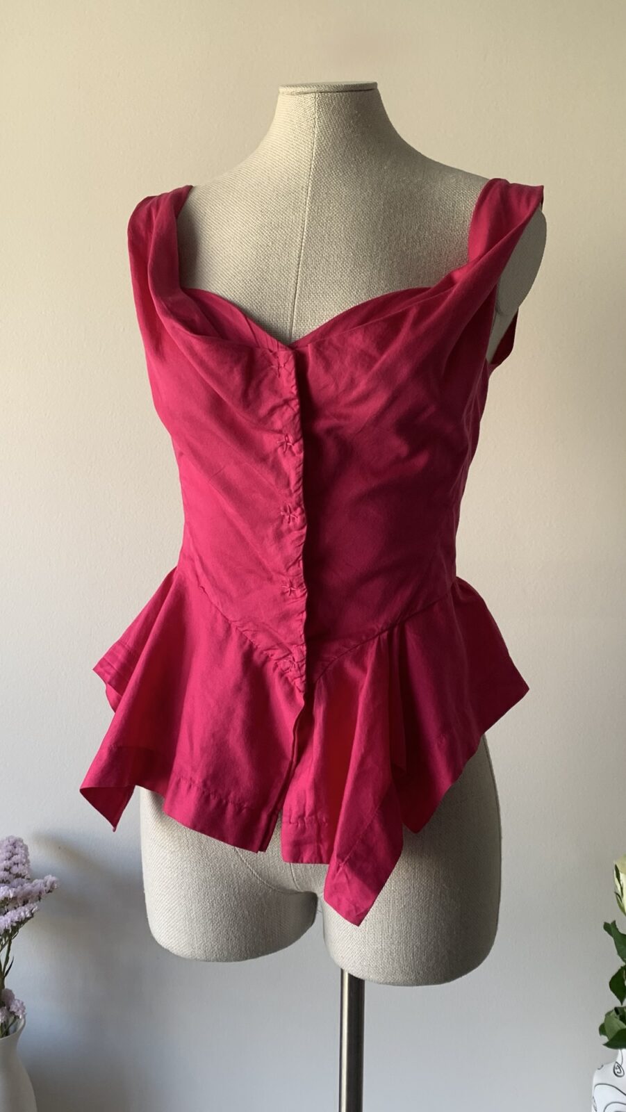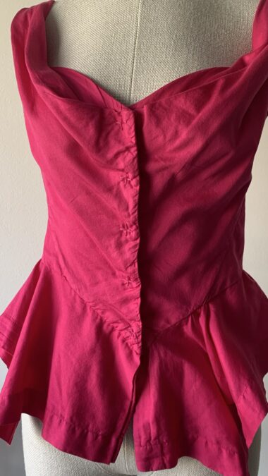 Vivienne Westwood (Anglomania line) pink peplum top from the early 00s. Presented for the first time in the late 90s, this top has been a staple of the house ever since.